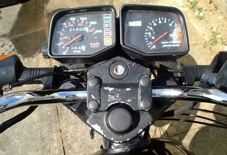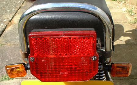 | This bike has been the subject of many customisations. This closeup shot shows the enhanced indicators (Note. This is the only view most will see of the BM.) | ![]() |